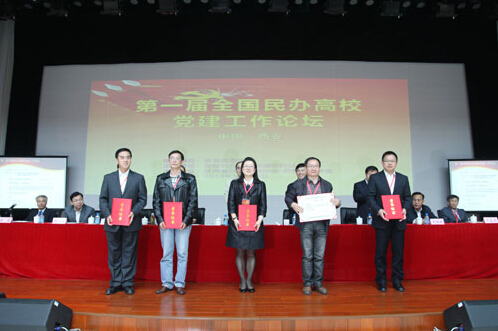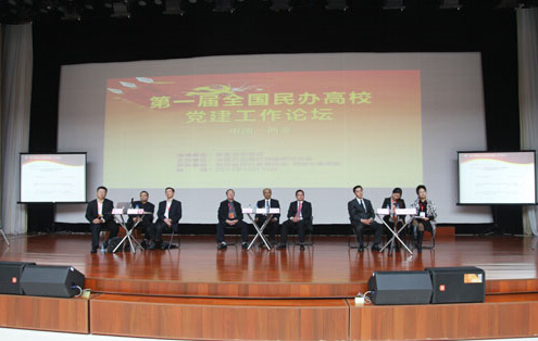 2013年10月19日,第一届全国民办高校党建工作论坛在古城西安隆重召开。本次论坛由教育部思政司指导,全国民办高校党建研究分会主办,陕西省民办教育协会、西安外事学院承办,教育部思政司副司长王光彦、中组部组织二局五处处长谢玉峰、教育部思政司组宣处调研员荆辉、陕西省委高教工委常务副书记董小龙、陕西省委高教工委组织部部长陈平社、陕西省民办教育协会会长董祥林出席会议,来自全国103所民办高校的159位党委书记、党务干部、董事长、校长,以及来自中央及地方媒体的代表参会。会议由全国民办高校党建研究分会理事长、北京城市学院党委书记、校长刘林主持。